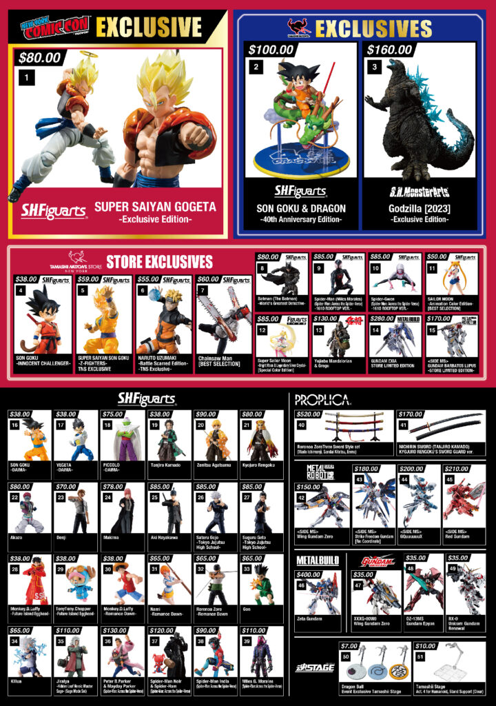 Here is a breakdown image of all items that will be sold at the Tamashii Nations Booth # 2417